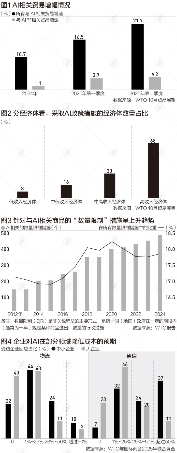 在WTO看来,当前,AI已成为贸易驱动型增长的重要催化剂。比如,AI通过优化供应链、自动化海关清关、降低语言壁垒等方式减少贸易成本,以及推动全行业生产效率提升等。