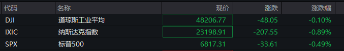 当地时间11月13日,美股三大指数集体低开,纳指一度跌超1%。截至发稿,道指跌0.1%,纳指跌0.89%,标普500指数跌0.49%。