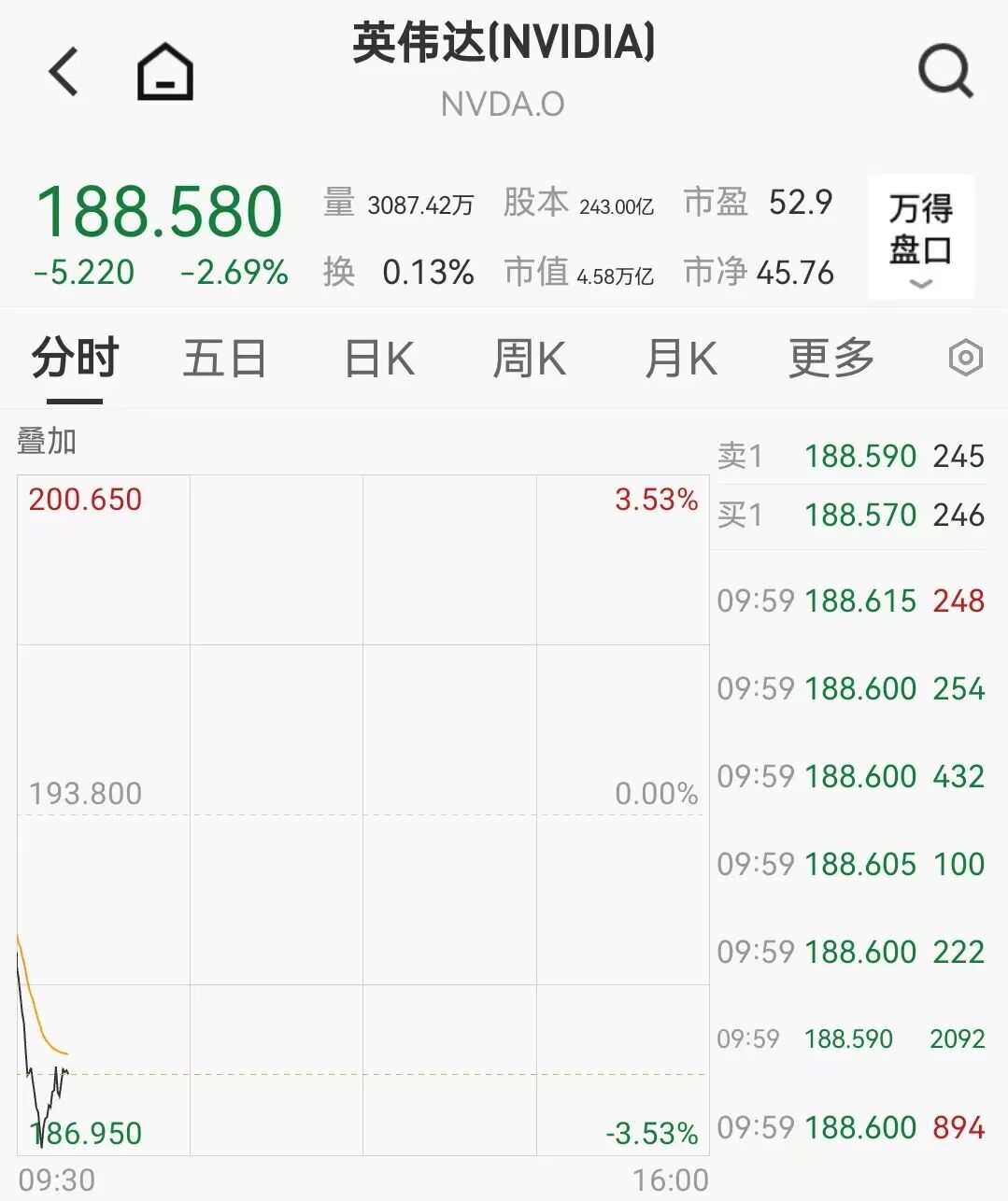刚刚,美股英伟达开盘再度直线下挫,盘中跌超3%。
