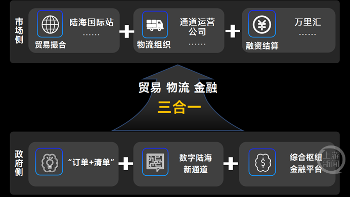 体系按“3+1”架构搭建,涵盖贸易撮合、物流组织、融资结算和专业服务四大板块,其中贸易、物流、金融“三合一”为核心功能,专业服务全程保障。平台由政府侧与市场侧共同打造,政府侧依托政务数字化应用和数字金融服务平台提供支撑,市场侧聚合各类相关平台与企业,推动各功能深度融合。