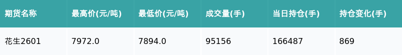 南财智讯11月13日电,南财金融终端盘后期货数据显示,郑州商品交易所的花生主力合约收涨0.71%,收盘报7966.0元/吨,日内资金流入1087.42万元。其他相关指标见下表:
