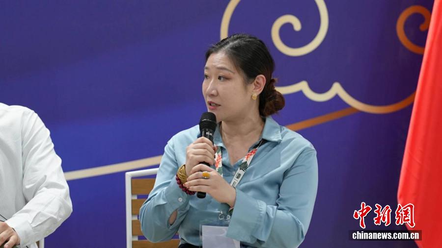 图为斯坦福大学自然资本项目中心高级科学家、杜尔可持续发展学院研究员朱梦曳在圆桌论坛上讲话。中新网记者林勐男摄