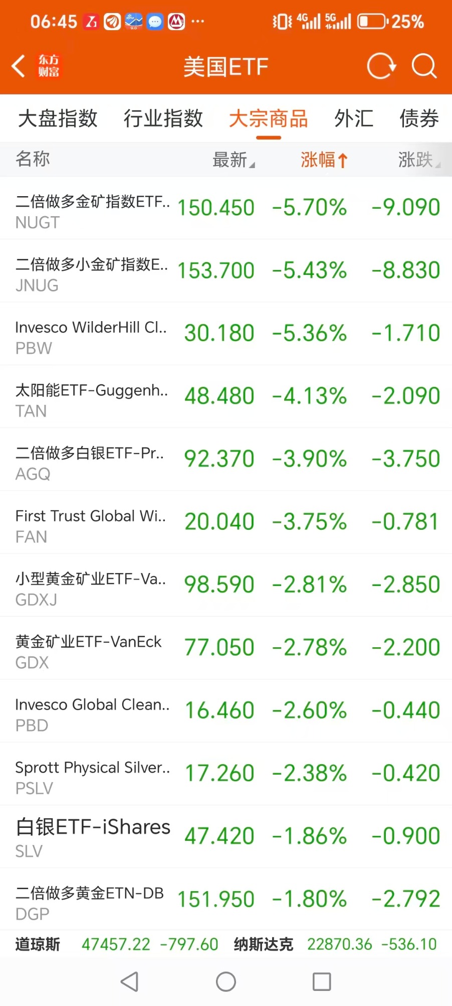 2倍做多金矿指数ETF-Direxion(NUGT.US) 跌5.63%,成交额2.2亿美元。
