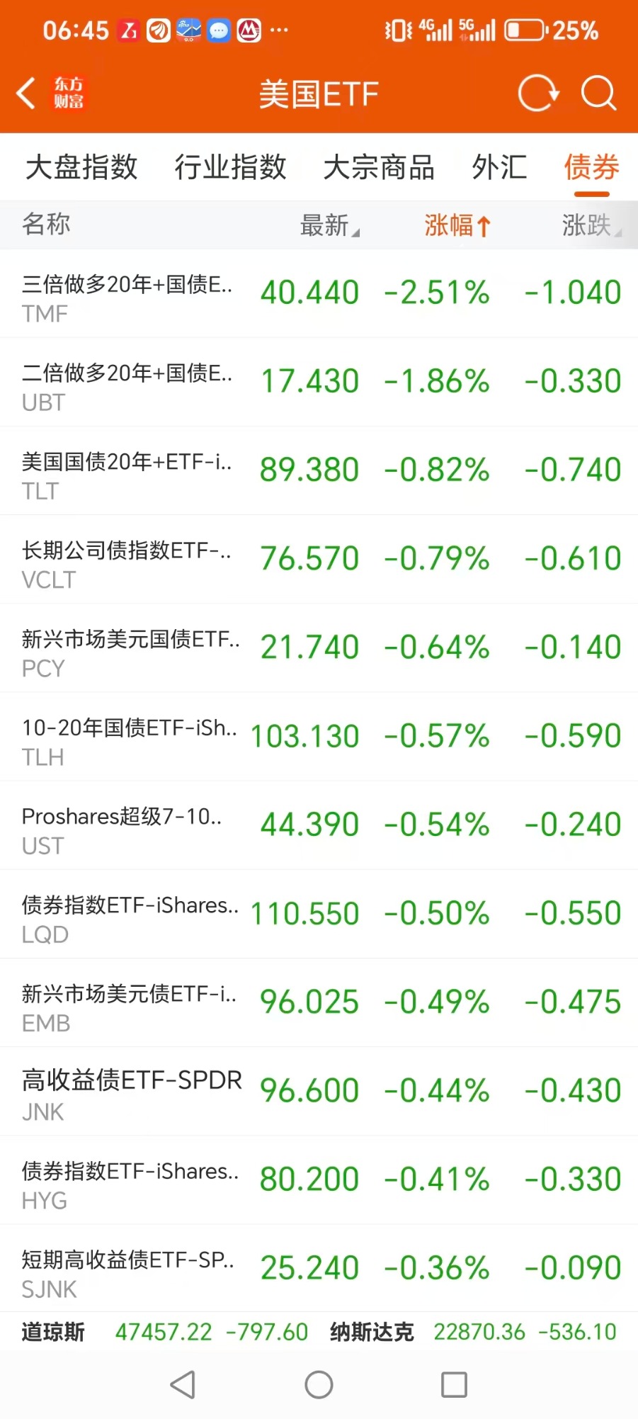 三倍做多20年期以上国债ETF-Direxion(TMF.US) 跌2.51%,成交额1.87亿美元。