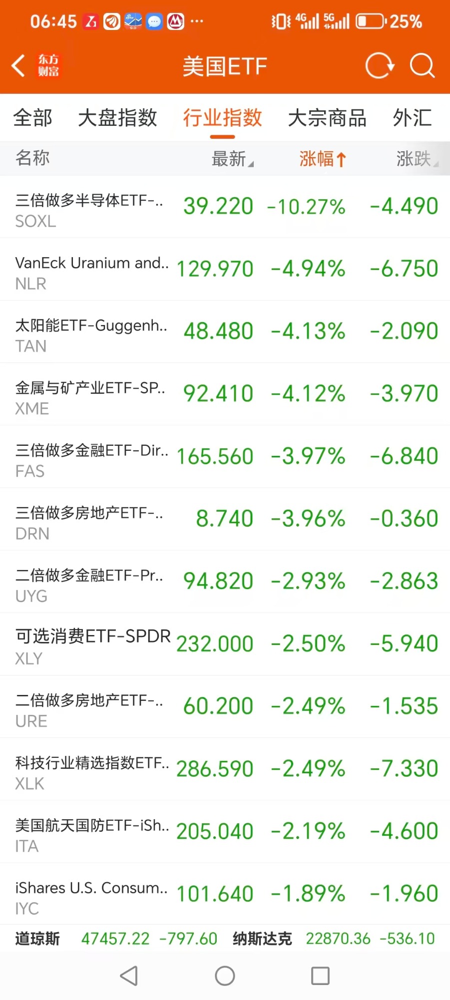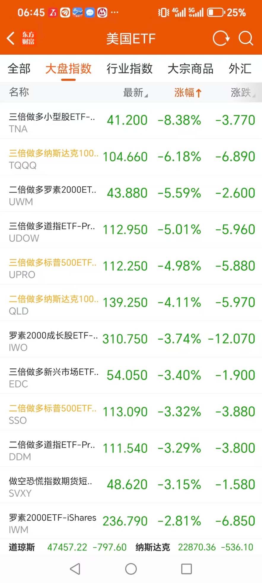三倍做多纳指ETF-ProShares(TQQQ.US) 跌6.42%,成交额103.95亿美元。