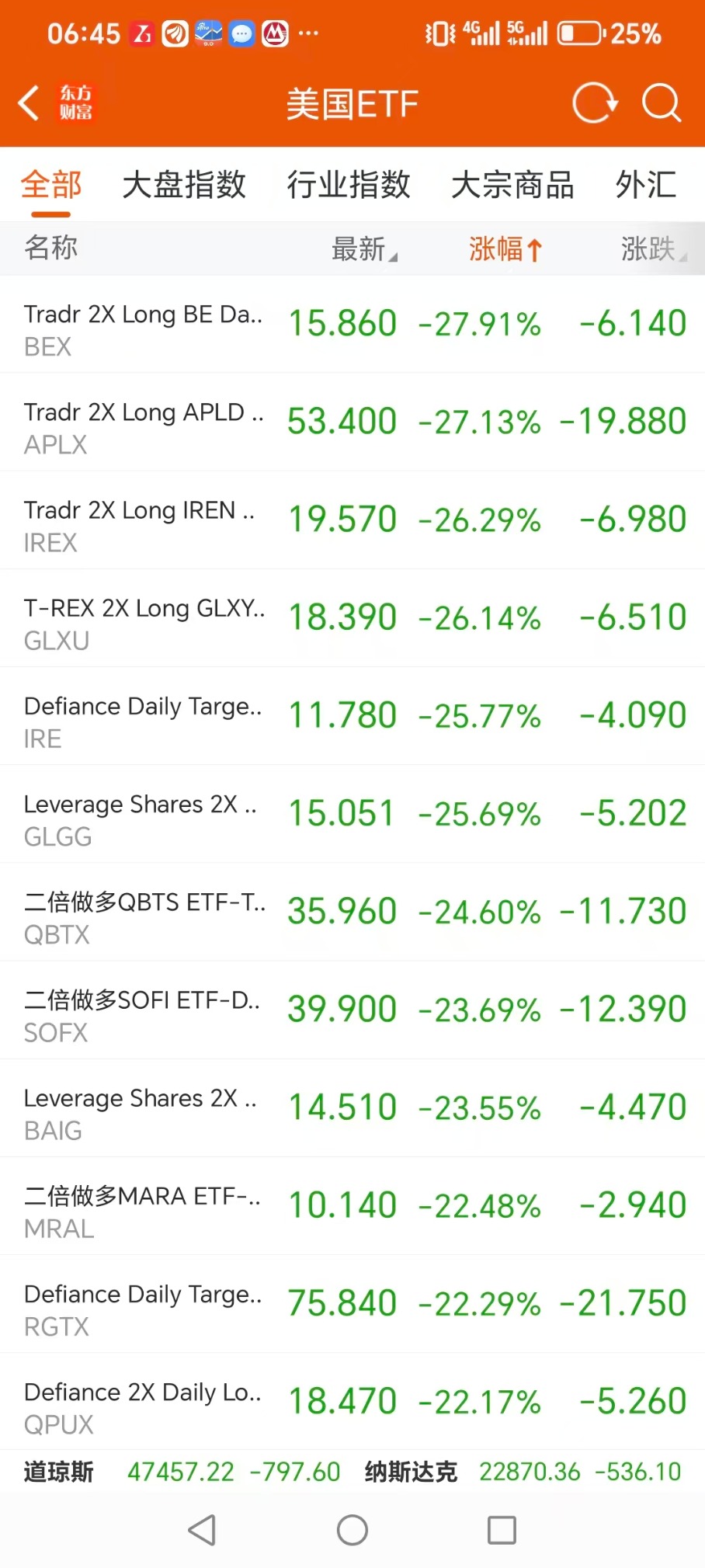 2倍做多GLXY ETF-Leverage Shares(GLGG.US) 跌25.89%,成交额112.82万美元。