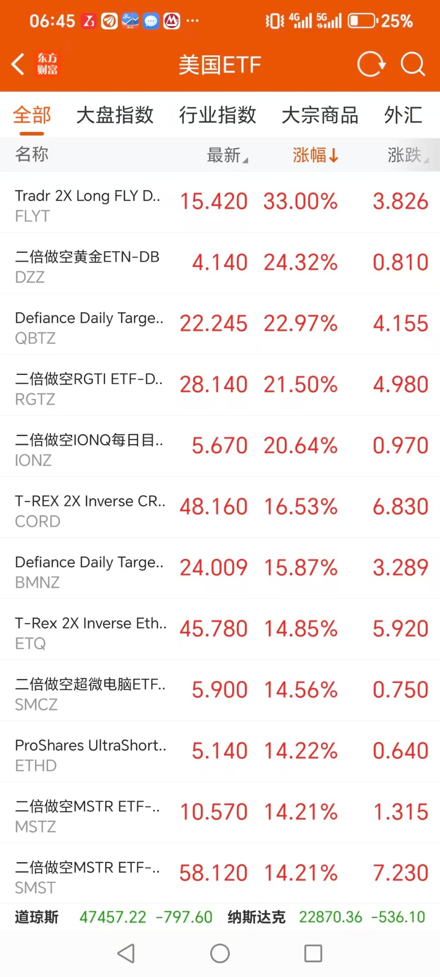 美股ETF升幅榜Top52倍做多FLY ETF-Tradr(FLYT.US) 升33.94%,成交额58.95万美元。