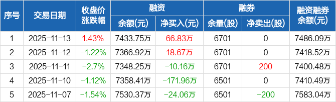 晶品特装:融资净买入66.83万元,融资余额7433.75万元(11-13)