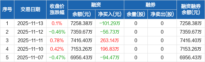 天元智能融资融券信息显示,2025年11月13日融资净偿还101.29万元;融资余额7258.38万元,较前一日下降1.38%。