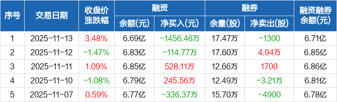 骆驼股份:融资净偿还1456.46万元,融资余额6.69亿元(11-13)