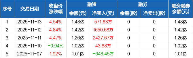 中自科技:融资余额1.48亿元,创历史新高(11-13)