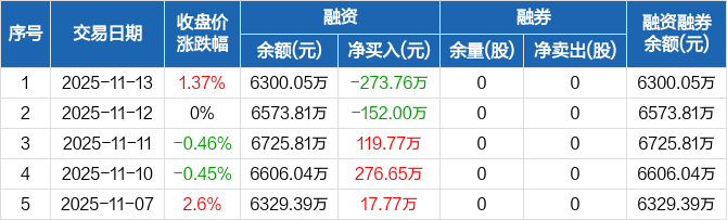 东来技术:融资净偿还273.76万元,融资余额6300.05万元(11-13)