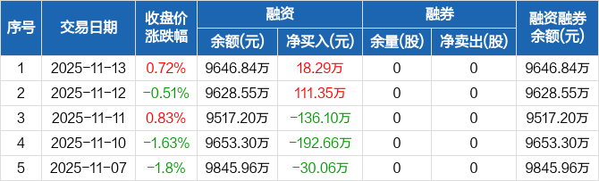 邦彦技术:融资净买入18.29万元,融资余额9646.84万元(11-13)