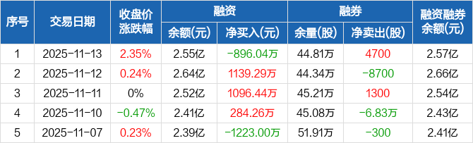 新钢股份:融资净偿还896.04万元,融资余额2.55亿元(11-13)