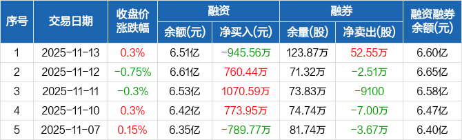 隧道股份:融资净偿还945.56万元,融资余额6.51亿元(11-13)