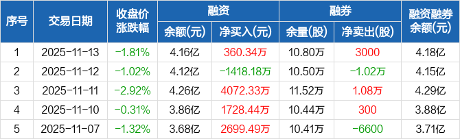 新雷能:融资净买入360.34万元,融资余额4.16亿元(11-13)