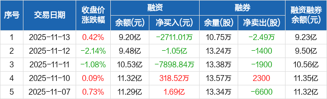 视觉中国融资融券信息显示,2025年11月13日融资净偿还2711.01万元;融资余额9.2亿元,较前一日下降2.86%。