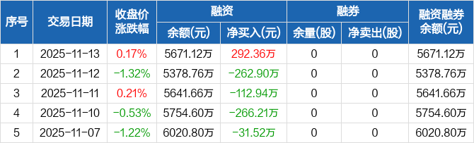 智信精密:融资净买入292.36万元,融资余额5671.12万元(11-13)