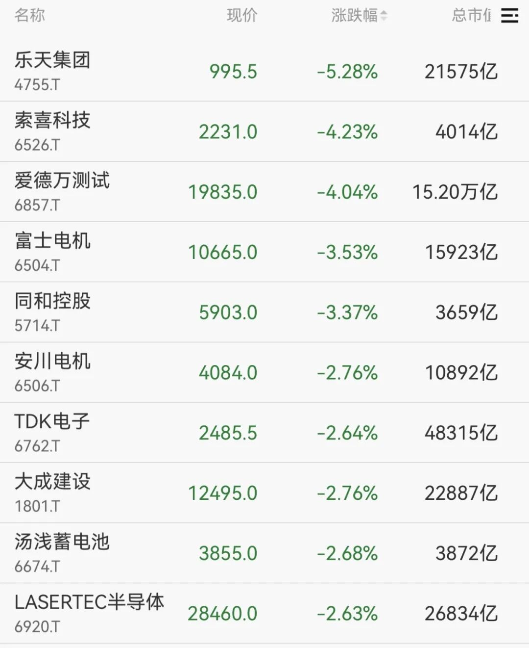 日本芯片相关股票大幅下跌,此前美国科技股下跌。软银集团一度下跌9%,东京电子股价跌超5%,爱德万测试下跌超4%。