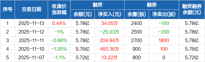 精研科技:融资净买入34.05万元,融资余额5.78亿元(11-13)
