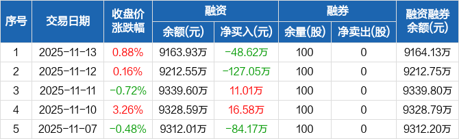 德必集团:融资净偿还48.62万元,融资余额9163.93万元(11-13)