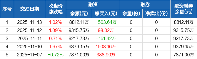 标普ETF:融资净偿还503.64万元,融资余额8812.11万元(11-13)