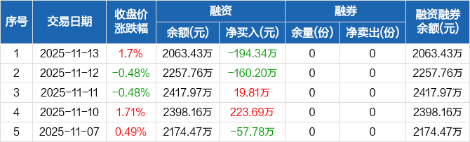 农业ETF:融资净偿还194.34万元,融资余额2063.43万元(11-13)