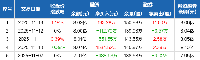 河钢股份融资融券信息显示,2025年11月13日融资净买入193.28万元;融资余额8.02亿元,较前一日增加0.24%。