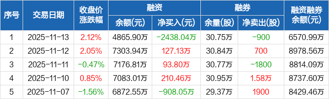 海思科:融资净偿还2438.04万元,创近一年新高(11-13)