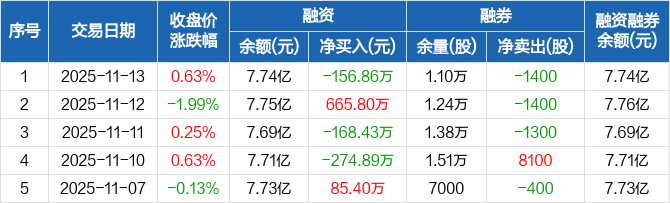 华灿光电:融资净偿还156.86万元,融资余额7.74亿元(11-13)