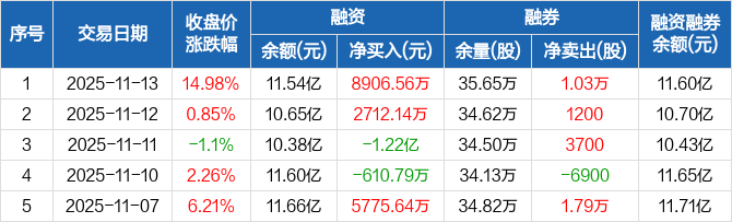 星源材质:融资净买入8906.56万元,融资余额11.54亿元(11-13)