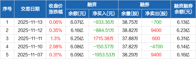 欧普康视:融资净偿还933.36万元,融资余额6.07亿元(11-13)