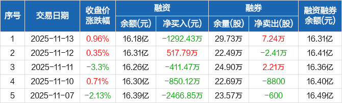 全志科技:融资净偿还1292.43万元,融资余额16.18亿元(11-13)