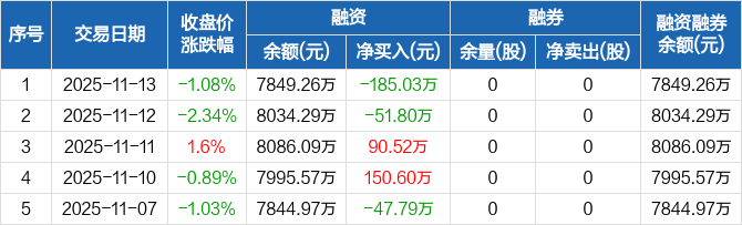 远信工业:融资净偿还185.03万元,融资余额7849.26万元(11-13)