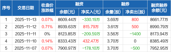 顺控发展:融资净偿还330.19万元,融资余额8609.44万元(11-13)