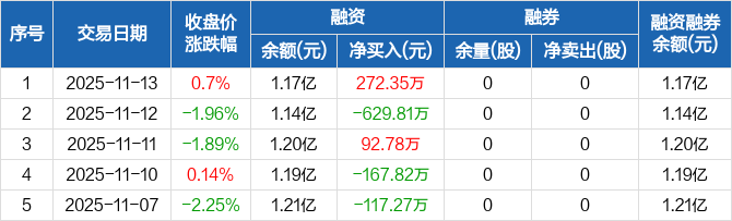 凯旺科技:融资净买入272.35万元,融资余额1.17亿元(11-13)