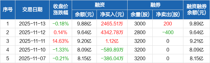 苏州天脉:融资余额9.88亿元,创历史新高(11-13)