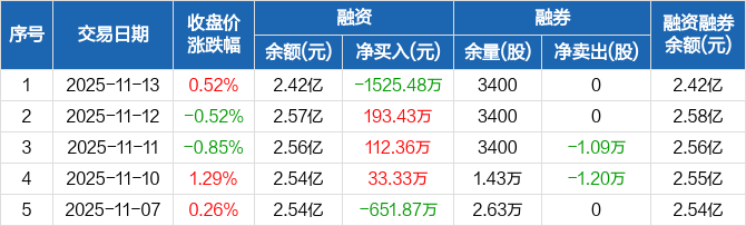 大富科技:融资净偿还1525.48万元,融资余额2.42亿元(11-13)