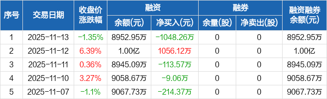可靠股份:融资净偿还1048.26万元,融资余额8952.95万元(11-13)