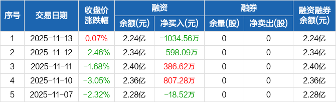 唯科科技:融资净偿还1034.56万元,融资余额2.24亿元(11-13)