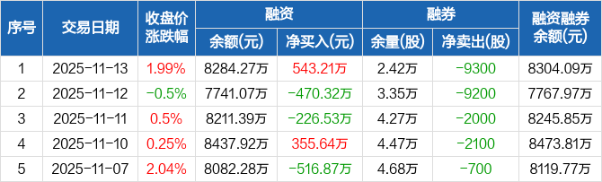 华润材料:融资净买入543.21万元,融资余额8284.27万元(11-13)