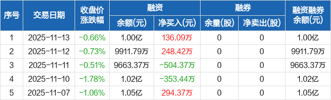 新柴股份:融资净买入136.09万元,融资余额1亿元(11-13)