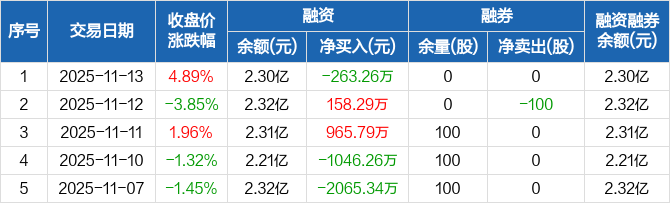厚普股份:融资净偿还263.26万元,融资余额2.3亿元(11-13)