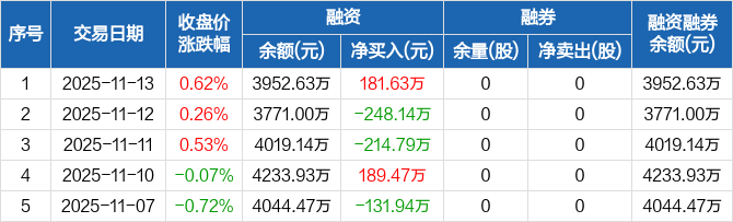 恒达新材:融资净买入181.63万元,融资余额3952.63万元(11-13)