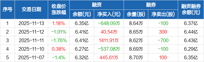 上海钢联融资融券信息显示,2025年11月13日融资净偿还648.09万元;融资余额6.35亿元,较前一日下降1.01%。