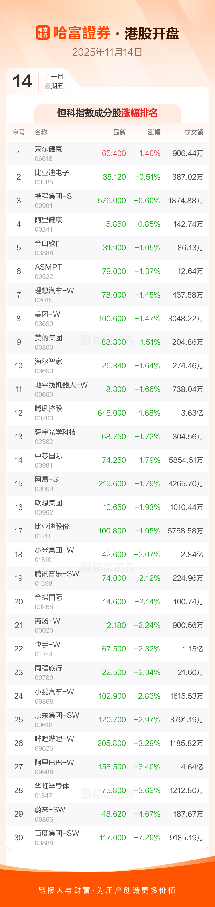 港股开盘:恒指低开1.52% 百度集团-SW领跌成分股