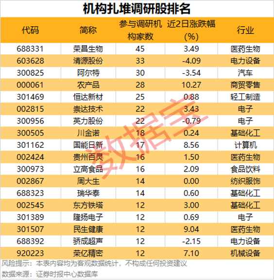荣昌生物参与调研机构最多,共45家机构调研,主要关注公司三季度业绩、核心管线开发、重磅研究进展等。