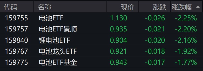 电池概念股早盘走弱,电池相关ETF跌约2%