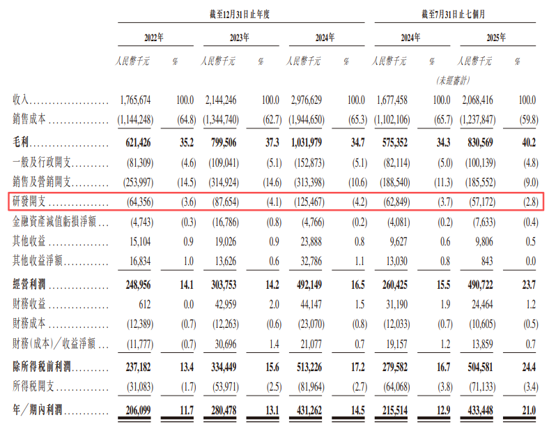 与“讲新故事”的节奏相比,公司研发投入的节奏则显得相对保守。招股书显示,2022-2024年公司研发费用分别占收入的3.6%、4.1%和4.2%,今年前7个月该比例约为2.8%。在电动出行与智能化浪潮迭起的背景下,这样的研发强度与公司“全球老年电动出行领军者”“人形机器人新赛道”的定位之间,存在一定落差。