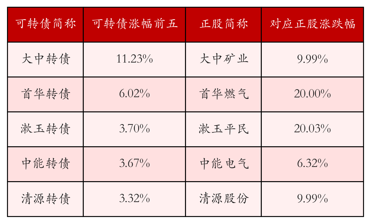 南财智讯11月14日电,南财金融终端盘后数据显示,债市方面,中证转债指数收跌0.58%,报491.71,成交额为713.51亿元。可转债方面,今日共成交400只可转债,其中75只收涨,0只收平,325只收跌。具体来看,9只可转债涨幅超过2%。其中大中转债(127070)涨11.23%,首华转债(123128)涨6.02%,漱玉转债(123172)涨3.7%。今日有38只可转债跌幅超2%,东时转债(113575)跌16.56%,测绘转债(123177)跌10.45%,利民转债(128144)跌6.26%。存在交易量的可转债所对应的正股中,151只收涨,14只收平,235只收跌。具体来看,7只可转债对应正股涨幅超过5%,其中,漱玉平民(301017)涨停,收涨20.03%;首华燃气(300483)涨停,收涨20.0%;清源股份(603628)涨停,收涨9.99%。同时所对应的可转债:漱玉转债(123172)同涨3.7%;首华转债(123128)同涨6.02%;清源转债(113694)同涨3.32%。今日有8只可转债对应正股跌幅超过5%,没有正股跌停。